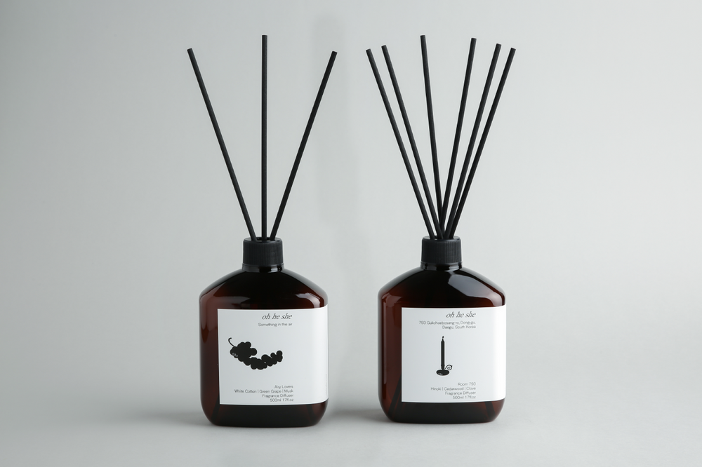 첫 번째 쇼룸 오픈을 기념하며 오히쉬 룸의 분위기와 번지수에서 영감받아 제작된 히노키, 시더우드, 클로브의 조화롭고 신비로운 향