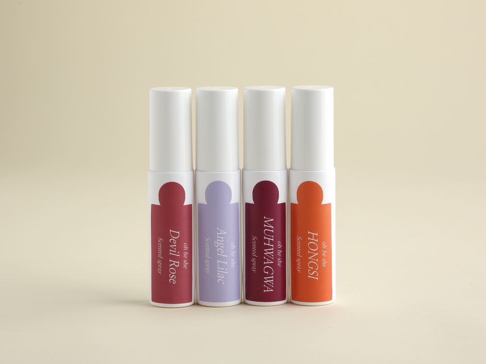 4가지 센티드 스프레이와 꼬순내 시향지가 한 팩으로 구성되었습니다.